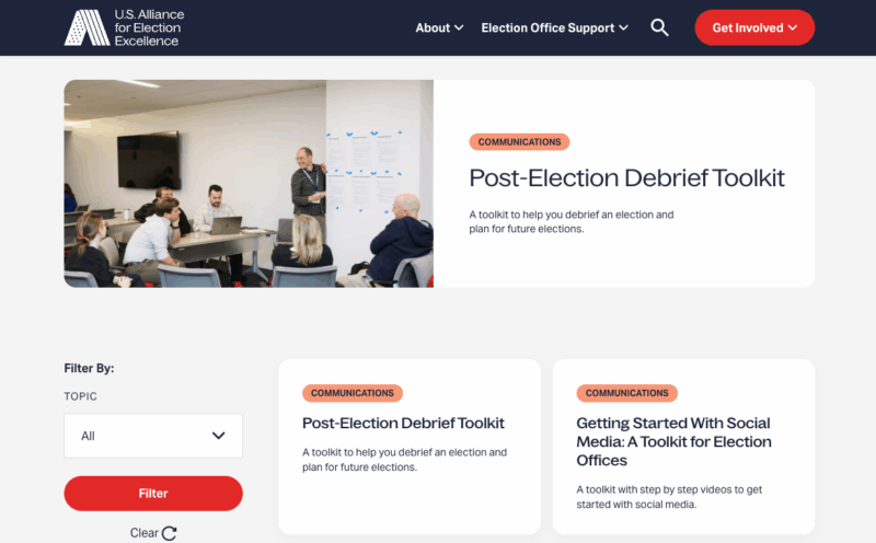 When running excellent elections, your office doesn’t need to go it alone. The Alliance–a coalition of nonpartisan organizations, experts, and election officials like you–provides access to the latest nonpartisan general-use, field-tested tools, like: